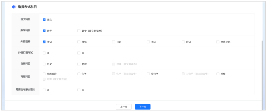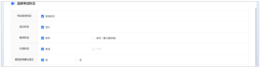 外语科目:默认“英语”,其中,原民族语言授课考生报考牧医类可选择“不考”。